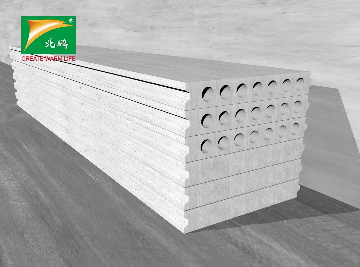 北鵬?牌增強(qiáng)發(fā)泡混凝土條板是以硅酸鹽水泥,摻加增強(qiáng)劑、增韌劑、穩(wěn)定劑等原材料,采用物理機(jī)械合成+化學(xué)的發(fā)泡法工藝、設(shè)備經(jīng)攪拌發(fā)泡、免振搗注漿,再經(jīng)由水熱速凝模具、抽孔成型,蒸汽養(yǎng)護(hù)而成的裝配式內(nèi)隔墻板預(yù)制板。